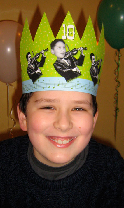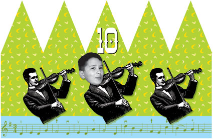The latest and greatest from Tina for Lloyd on the tenth anniversary of his birth. The theme this year was the violin since that is what Lloyd has been learning this school year. See a recent recital here. Sharp-eyed music aficionados may notice that the music around the band is “Happy Birthday.”