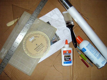 Cardboard was cut. Silver paper applied. Print-outs mounted to board. Measuring, cutting and a lot of looking around for the old compass and the universal adapter I thought I had for it. What looked like a pile of cardboard and junk started to take form. The excitement was building!