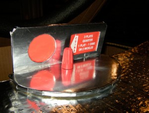 I’m not sure where the idea came from, but hopefully Tina will clear that up in a comment to this post. Maybe she had vending machines on the brain and eventually wended her way to jukeboxes. The idea emerged; some internet research was done and plans were sketched up. One of the first orders of business was to have our son provide us with his ten favorite songs.