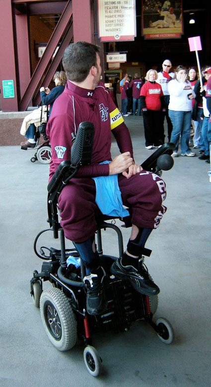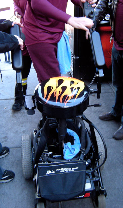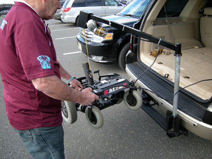 Having talked to my brother Charles, I knew all about the contraption that he converted from an electric scooter for his son Brian’s use, but on Saturday during the Philly ALS Walk, I got to witness The Worm-Mobile in all of its glory.