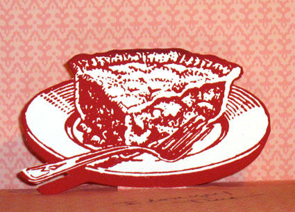 This is Tina’s Valentine to Joe for 2011. This is the front. Open it up for a pop-up element that Tina engineered. It’s a little hard to tell from the photo below, but the pie is in 3-D!