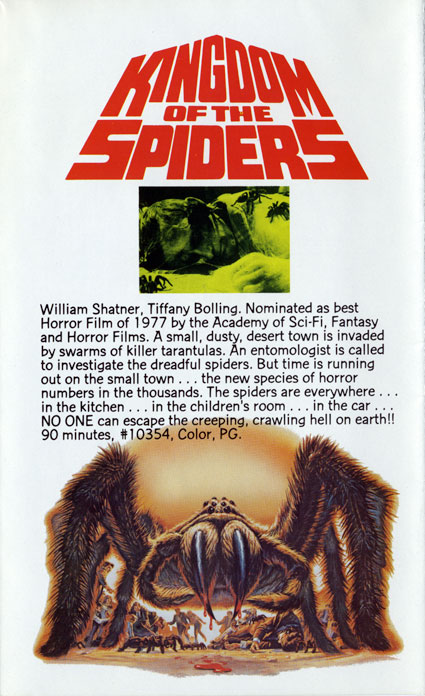 This one is for frequent visitor and commenter JT who mentioned this cinematic marvel in the comments section of my last Dawn of the Home Video Revolution post. As luck would have it, Kingdom of the Spiders is one of movies featured in the VCI video brochure from the early days of home video. JT, you said it, you get it!