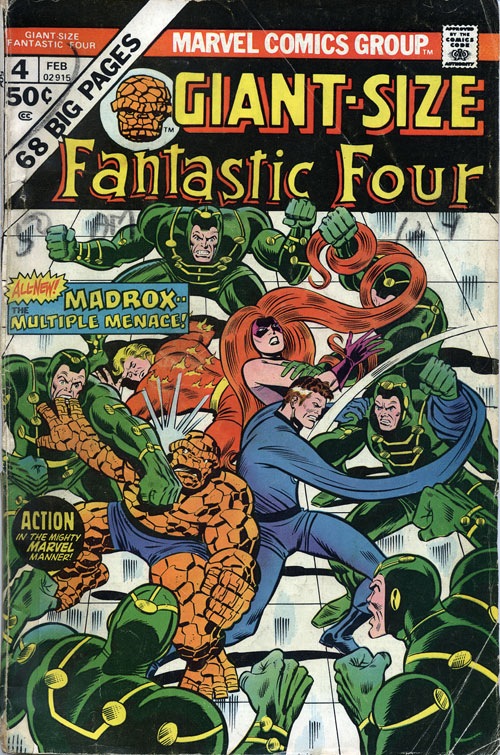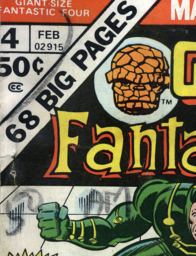 This was from Giant-Size Fantastic Four No 4 which came out in 1975. Right off of the bat, do you notice something wrong with the cover?