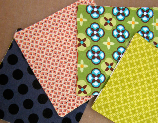 I had tiny scraps of fabric from various projects that I couldn’t bring myself to throw away. Now these scraps are coasters!