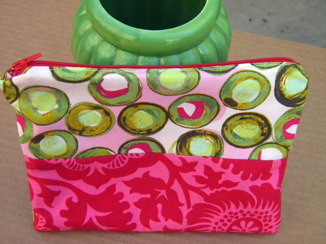 Another way to use up the odd pieces in your fabric stash – the zippered pouch. There are a lot of terrific tutorials online, I used this one.