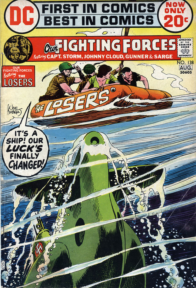 This cheesy ad for an inflatable pillow printed with Raquel Welch’s likeness ran in comics for years, but I scanned it from Our Fighting Forces featuring The Losers No. 138 which was published by DC Comics in 1972. What’s interesting about this terrific Joe Kubert cover is how much it resembles the iconic poster for the blockbuster Jaws.