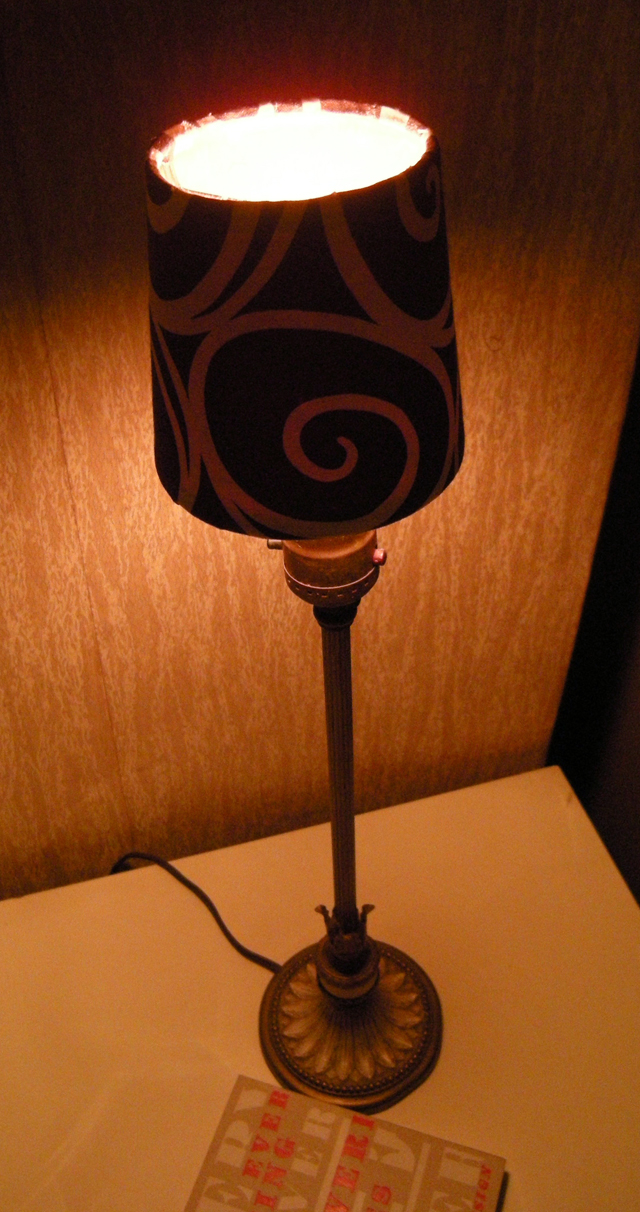 I bought this lamp at Village Thrift in North Philadelphia for $1.50 in the mid-eighties. It used to be near my bed, spent time on the kitchen table, and now sits on my desk in the studio. I love that it’s ornate, takes up little space, and throws off just enough light with it’s 40 watt bulb. The problem was that the shade was looking a little worse for wear, something had to be done!