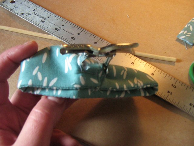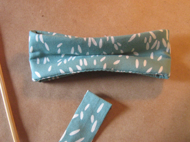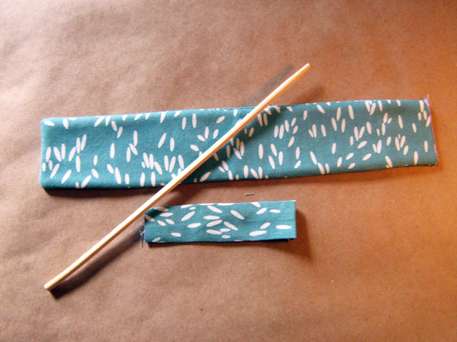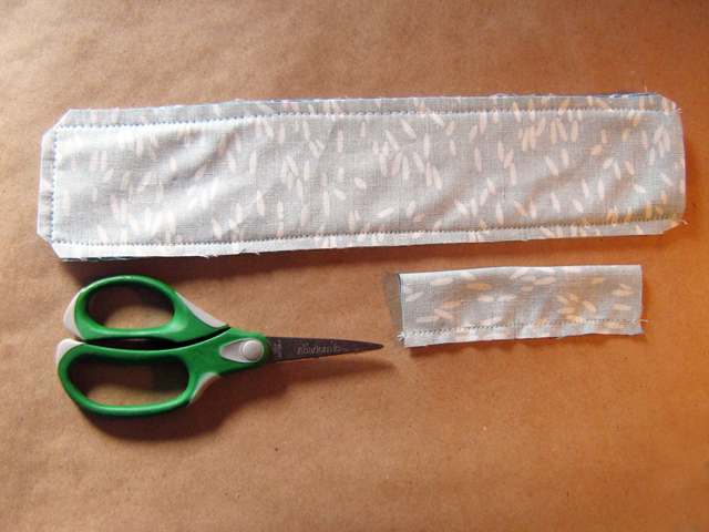 4. Turn both pieces right side out. Press the small piece flat, making sure the seam is centered in back. Use a chopstick or a knitting needle to push out the corners of the larger piece of fabric.