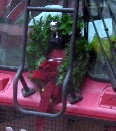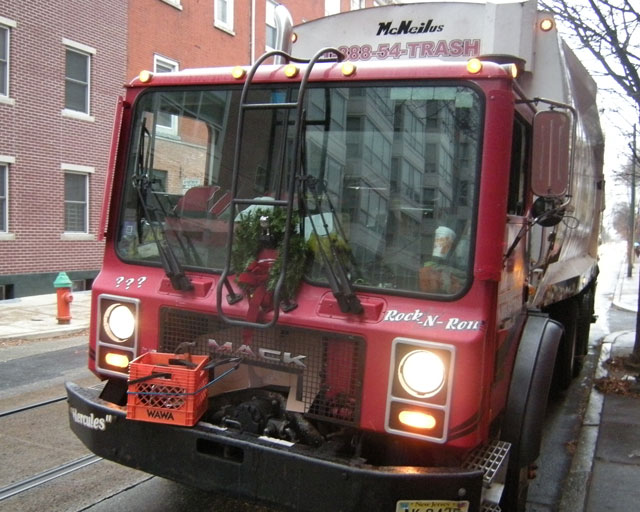Private refuse collectors get in the spirit of the season with this Christmas-y truck mascot. Nice wreath, fellas! Merry Christmas!