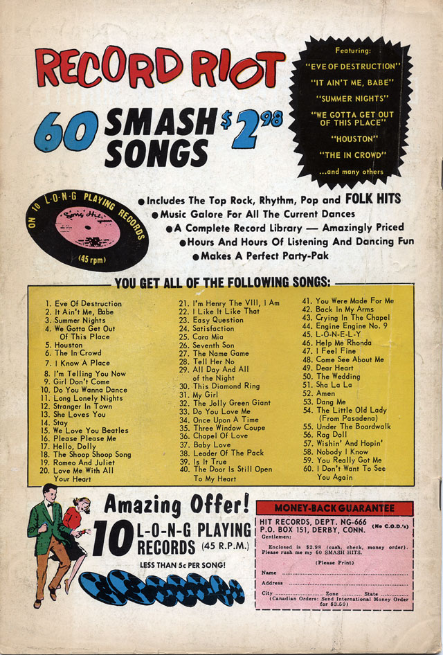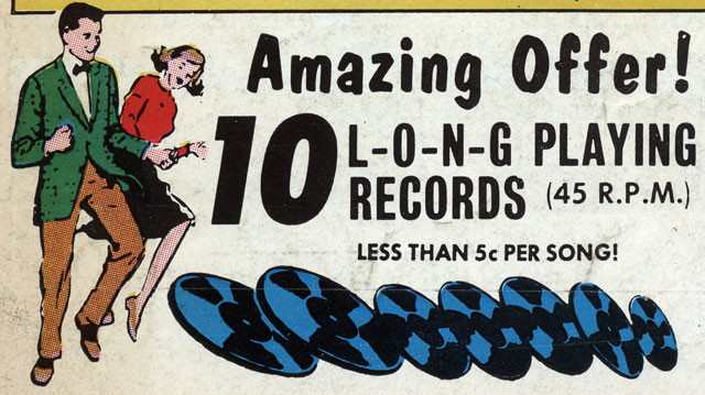 Strangely missing from this incredible list of stacks and stacks of rockin’ wax is any mention of artists performing these timeless tunes. I have a feeling it’s a huge collection of sound-alike recordings performed by session musicians and sold CHEAP. Could you imagine the disappointment of your party guests when they realize that the songs that they were going to madly cut a rug to were made by guys at a studio being paid by the hour in a sausage factory setting? You’ll have to spike the punch with half of Dad’s liquor cabinet in order to get anybody to show!