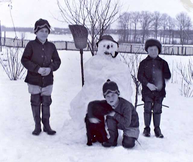 We’re back again with another negative from the collection of 200 glass negatives shot by John B Capewell of Westville, NJ about 100 years ago. This is a follow-up to last week’s post featuring a ghostly figure in front of two boys and their snowman. This week the mystery of the ghost boy is solved!