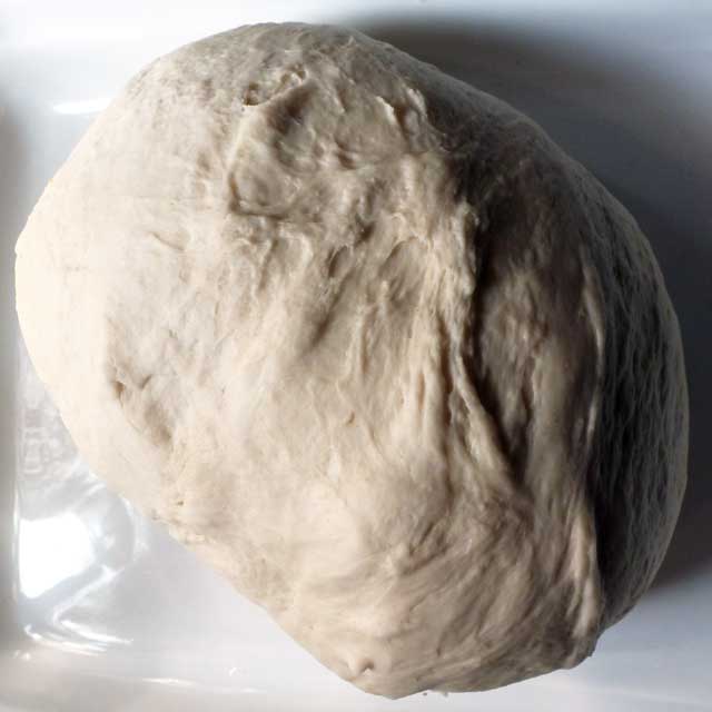 Shape the dough into a ball and place in a plastic bag that’s been lightly floured. Squeeze out the air and tie with a twist tie at the top, allowing room for the dough to rise. Let it rise in a warm place (I set mine on a radiator) for an hour and a half, it should double in size.