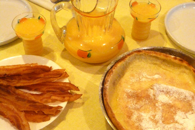 3. Working quickly, remove the pan from the oven and, using a fine-meshed sieve, sprinkle with the sugar. Return to the oven for 1 to 2 minutes more. Sprinkle with lemon juice and serve with jam, pear butter or marmalade. Serves 2 to 4.