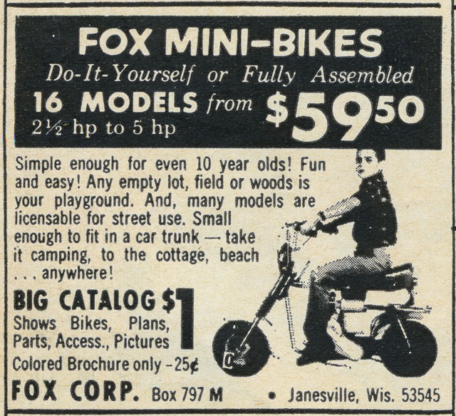 The jerky, jerk-face kid in the ad stares back haughtily mocking your lack of a mini-bike and cool parents who would buy one for you.