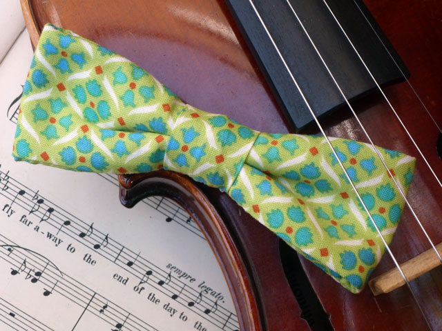 The spring concert at Lloyd’s school is coming up, I thought it fitting to celebrate the occasion by making him a new bow tie. I’m thrilled that Denyse Schmidt’s first fabric collection, Flea Market Fancy has been reprinted, so the bow tie gave me an excuse to snap some of it up!