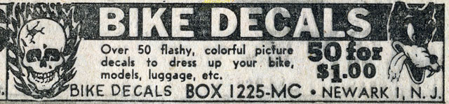 Back then I thought Ghost Rider was a conscious knock-off of the tattoo and patch emblem that I had seen in comic book ads like the one below and in some of the biker gang movies that were the craze in the late ’60s.