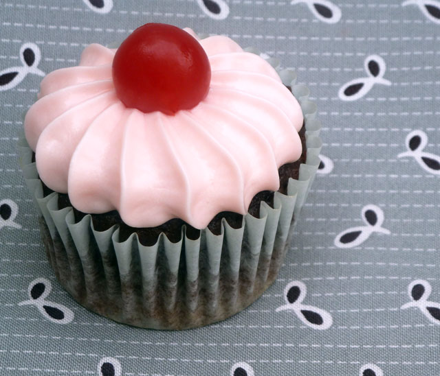 This is another bake sale cupcake, the recipe came from shortcut queen Anne Byrn, also known as The Cake Doctor. It uses a box cake mix and a can of cherry pie filling, resulting in an incredibly moist cake. I converted the recipe from a cake into cupcakes, and used a buttercream instead of the chocolate glaze – although I think a dusting of confectionary sugar in place of an icing would work too. It’s that good!