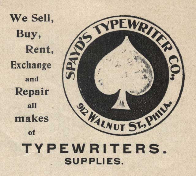 Here’s an advertisement for Spayd’s Typewriter Company from the program/souvenir booklet for the play L’Aiglon starring Maude Adams which played in Philadelphia at The Broad Street Theater back in 1901.