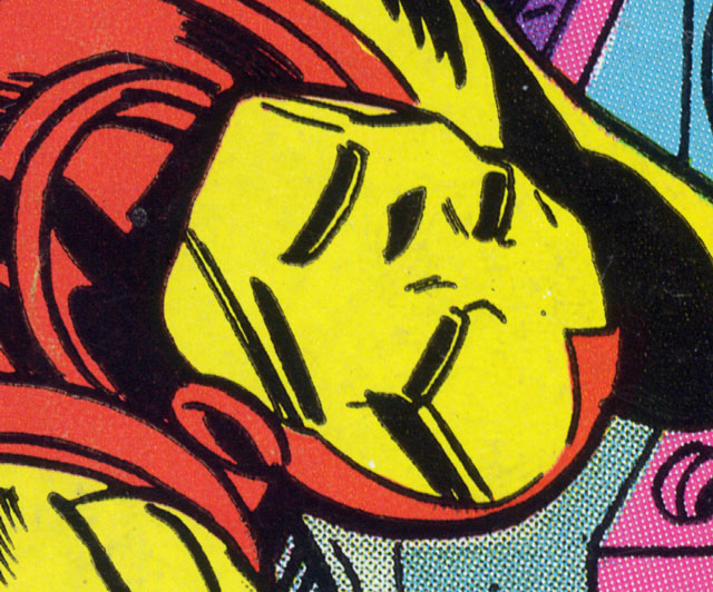 I’m not sure why they felt it was necessary to mold a nose into Iron Man’s face mask,but they did. This was well before the carefully thought out mechanics of the armor that appeared in the recent comics and the blockbuster movies. Back then, comics couldn’t shake free of the Superman mold where the hero maintained a secret identity and wore his costume under his civilian clothes. All of the costumed crime-fighters wore their super-duds beneath their street clothes no matter how hot it was outside so they could be ready in a moment’s notice. You were supposed to suspend the disbelief and go along with the idea that within the skin tight costume was a miraculous array of micro-electronics that made Stark invincible. I always loved Iron Man comics, but I had a hard time swallowing the fantasy technology as a kid. The new armor is vastly superior to this silly old notion.