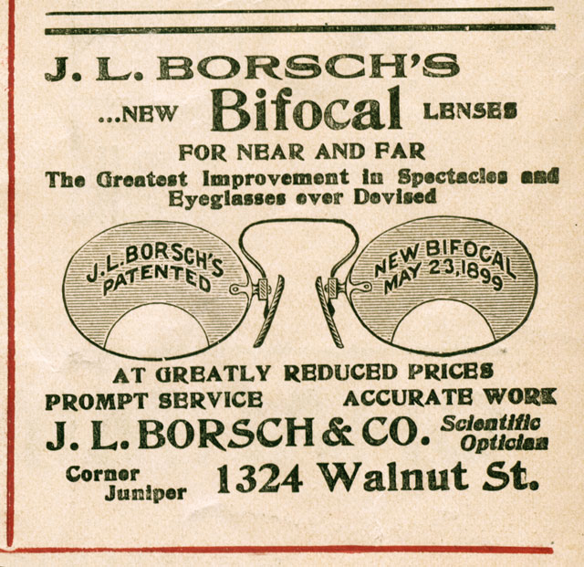 I got another lucky break on this one when I discovered Dr. Borsch held patents for improving bifocal lenses. From Wikipedia: