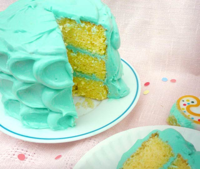 Ice the layers with a skim coat – a thin layer of icing to seal the surfaces. Refrigerate for a half hour, then resume frosting your cake. I made a three layer, but the folks at Ladies’ Home Journal made an impressive five layer! Happy baking!