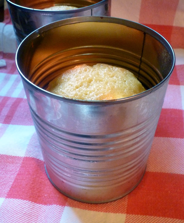 The tiny cake that I made for our 3rd Anniversary post was baked in a tin can, specifically, three 28 ounce crushed tomato cans!