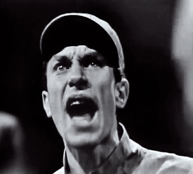 Besides from condensing the book into an hour-long teleplay, the show takes some interesting liberties with the story. Emmanuel Goldstein, the enemy of the people, becomes Cassandra. Maybe Westinghouse got nervous and the writers decided to ply the character with a less ethnic sounding name. Heading back to the classics and giving the character the name of the prophet nobody believed was a sly move. So it didn’t strictly adhere to the book. So what? The eggheads who read the book probably wouldn’t own televisions anyway. No angry letters meant a happy sponsor which meant everybody keeps their jobs. Everybody’s happy. Win-win!