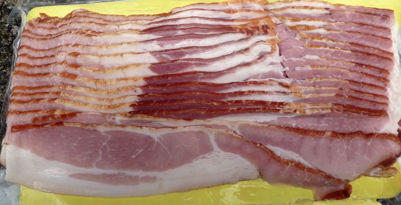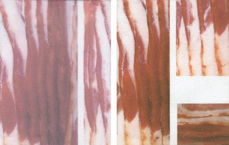 I bought a pound of bacon and photographed it, imported it into Photoshop and adjusted the color using Levels. I took some white, 100% cotton and coated it with the digital ground clear gloss and fed it through my printer taping it to a piece of cardstock as a carrier.