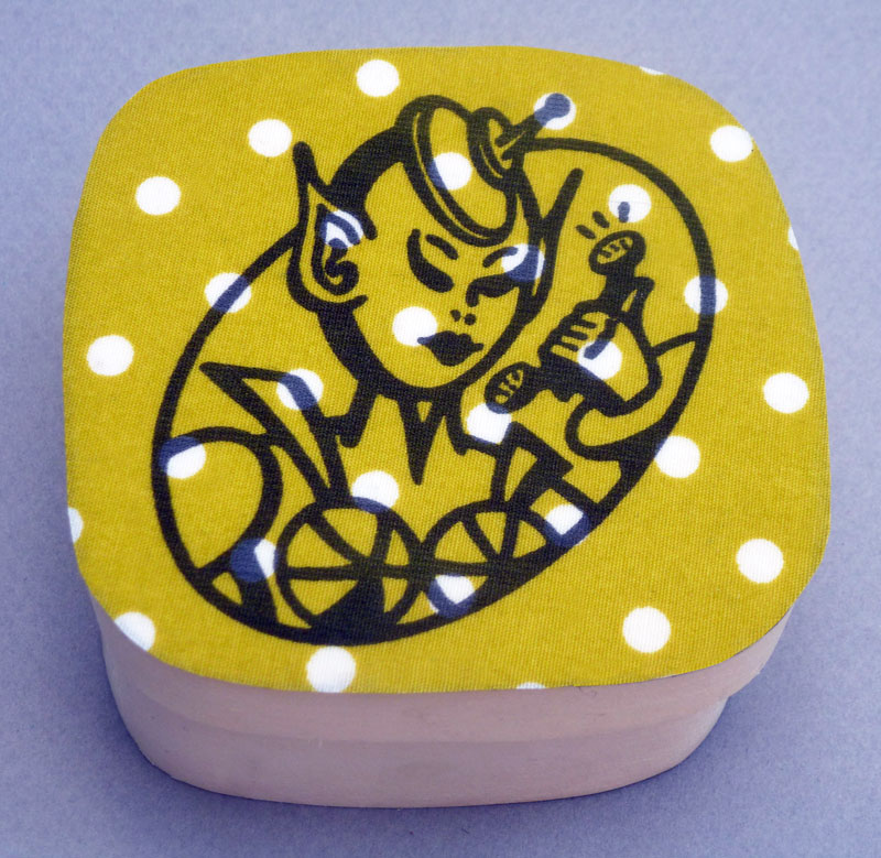 I had a balsa wood box lying around in my studio decided to decorate the lid with this image of what I like to call “Spock and Madonna’s love child”.