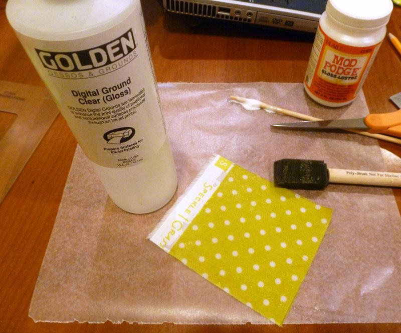 When the Mod Podge was dry, I flipped the fabric over and applied the digital grounds to the right side of the fabric using horizontal strokes.