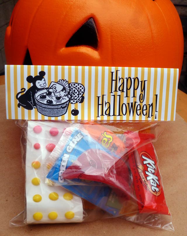 Halloween is right around the corner (well, not really – but it doesn’t hurt to be prepared) so I’ve designed two treat bag toppers. They’re perfect favors for a Halloween or school party. It’s easy –just download the PDF, print it out on cardstock, cut them out, fold in half, and staple or use double sided tape to attach them to a Ziploc bag. You can use the sandwich or snack size bags with the toppers. Wax lips for everyone!!!!