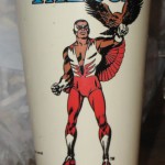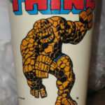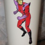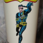 These collectible Slurpee cups come from the era of flared jeans, Earth Shoes and leaded gasoline. This is back before the internet, home video, video games and other fabulous electrified time-wasters. Only three broadcast networks and a handful of UHF channels broadcasting reruns were available at the time. Fantasy fiends had to content themselves with Lee Majors leaping in slow motion, well-worn reruns of Star Trek and low-rent, cornball fare like Godzilla Vs Megalon or At The Earth’s Core dumped into weekend kiddie matinees. The one oasis was the monthly comics in spinning metal racks at newsstands, drug stores and convenience stores like 7-Eleven. 7-Eleven also catered to the kids with super-hero drink cups. My younger brother and I had to have them. It was worth the brain freeze to get our favorite character on a cup. The problem was that the cups were random and the Slurpee machine was behind the counter. Whatever the clerk grabbed was yours. He poured it, you bought it. Sometimes you would luck out and end up with Iron Man. Other times you wound up with the Sub-Mariner (water-logged Spock-looking guy) or Chameleon Boy (we hated DC back then.)
