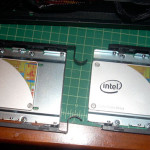 I shut it all down and inserted the hard-drives. Dan already had two 1TB mechanical drives he wanted to put into this box and purchased three new solid state drives — a 120GB and two 240GB. Dan decided to fulfill his need for speed with these beauties.