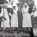 These images are fabulous! All of the photographs are of various organizations associated with the Independent Order of Odd Fellows (IOOF), a fraternal organization. The local lodge of IOOF in Westville, which met at the Union Fire Company’s hall on Broadway, was the Crown Point Lodge no. 268. You will find the IOOF’s logo features a three-link chain with an F in the first link, an L in the second link, and a T in the third link. These letters stand for Friendship, Love and Truth. Associated with the IOOF lodge in Westville was the FLT Club for teenage boys. Likewise, the Mount Olivet Lodge no. 68 is the local lodge for the Rebekahs, an arm of the IOOF for young ladies in their teenage years. It is apparent that a close relationship existed between the Westville IOOF lodge and the fire company. If you look at the last two images below, the horse-drawn float is actually one of the ladder wagons from the fire company.