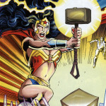 But Wonder Woman becoming Thor was an intriguing notion. In the story, Thor drops his hammer (I hate when that happens) and Wonder Woman being a warrior princess is worthy and is able to lift the Mighty Mjolnir. In doing so, she becomes Thor. Cool idea. It doesn’t last.