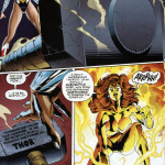 She decides that it wouldn’t be fair to kick the crap out of the tedious Storm with the hammer so she drops it. Why not? She turns back to regular Wonder Woman and somehow gets beaten by the X-Man.