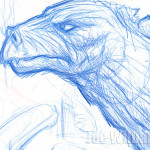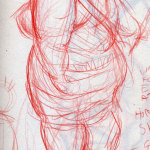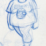 I drew this fellow from memory at the YMCA as I sat on the sidelines while my son swam around the pool. I used my trusty mechanical pencil with the indigo leads, and with this sketch, I laid another sketchbook to rest.