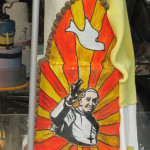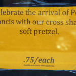 Papal-Mania is sweeping the nation and swamping the city! We’re drowning in a tsunami of draconian security measures, 24 hour hype from the news media, and an insane amount of keepsakes. We’ve seen t-shirts, buttons, flags, bows, a stuffed Francis, a waving Francis, and cross shaped soft pretzels.