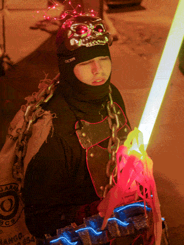 Dan Love that is. Dan shared these photos he shot of our boy’s Halloween costume. As they were being offloaded to my computer, I thought they would make a pretty nifty animation, and that’s what I did. You can get a sense of the Atomic Warrior in all of his electroluminescent glory!