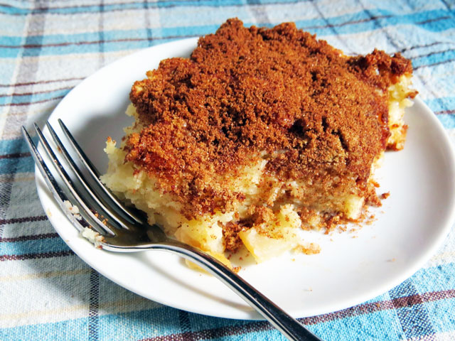 This apple cake certainly isn’t much to look at, but in the taste department, it’s Miss Universe! It’s studded with apples with a fine crumb, moist – thanks to the cream cheese, crowned with the perfect amount of brown sugar and cinnamon. It’s my new go-to apple cake!