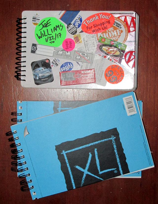 I went to a local art supply shop and bought a 9 inch by 12 inch sketchbook that has some nice paper capable of taking both wet and dry media. I’ve used this paper before and was pleased with how it took both pencil and ink. I got a pair of wire cutters and snipped away a few loops of the wire binding and then proceeded to a local printer who has a large cutter.