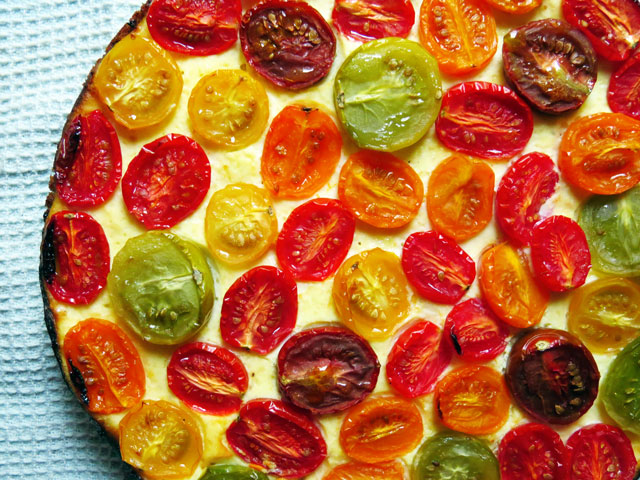 What I love about shopping on 9th Street is that you never know what you’re going to find on the stands – boxes of baby arugula, two red peppers for a dollar, or cauliflower in a hue that would make Prince proud. So many times I’ve gone there with a game plan, only to switch it up when something else caught my eye. On Sunday morning, I spotted jewel toned boxes of cherry tomatoes on a stand right outside of Esposito’s, I immediately bought two. I’d figure out what to do with them once I got home…
