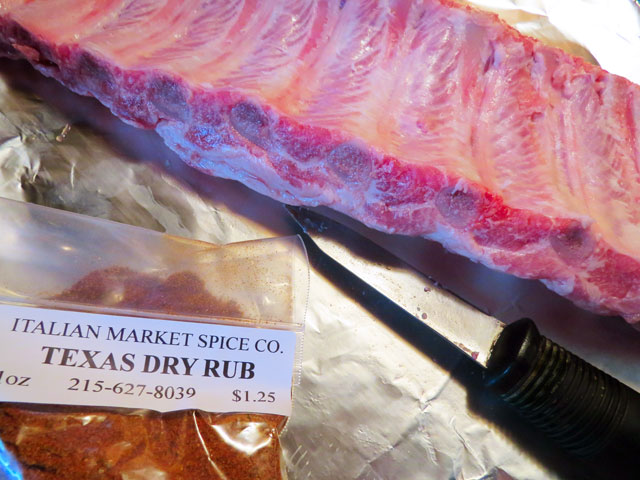 - Apply the dry rub everywhere, gently pressing it into the meat. With the rib meat side down, fold the foil around it creating a tight seal. Place on a sheet pan and bake in the oven for 2 hours.