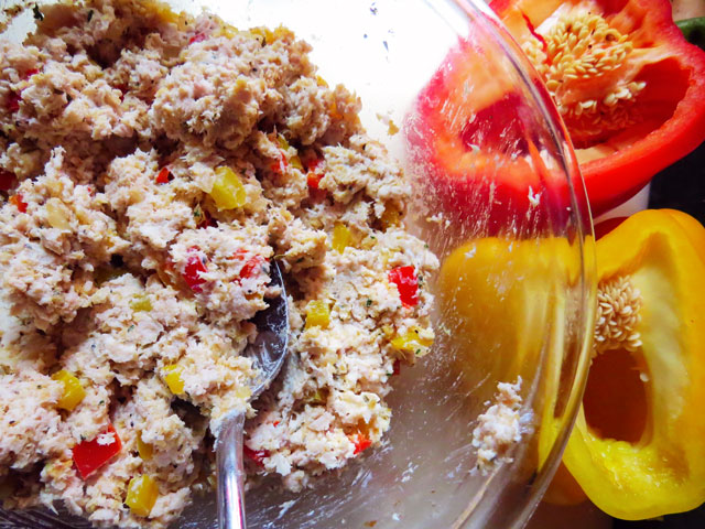 - Place the chicken in a mixing bowl, and add the sautéed vegetables, mayonnaise, lemon juice, dijon mustard, creole seasoning, and 1 cup of the panko breadcrumbs. Taste and adjust the seasonings if necessary, then add beaten eggs.