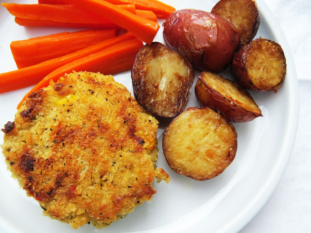 I always say, if you’re going to roast one chicken, you may as well roast two. That way, you can throw together a stir fry, enchiladas, or these chicken cakes on the fly. I made it even easier on myself by throwing pieces of chicken in my food processor, eliminating the step of having to chop up the chicken. The chicken cakes were delicious, easy to put together, and it’s great to have another option of what to make to make with leftover chicken!