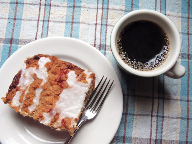 Due to an excessive amount of “senior” bananas in the fruit bowl, I made this Banana Bread Crumb Cake. Makes getting out of bed on a Monday morning a little easier!