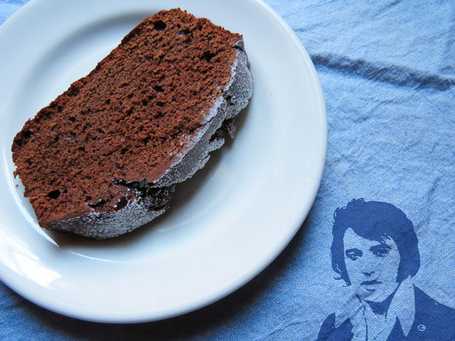 Today would have been The King’s 83rd birthday, and since the Boy is a huge fan – we thought we’d celebrate with a little chocolate cake! Sure, I could have made a grilled peanut butter and banana sandwich, or the pound cake Janelle McComb – a childhood friend of Elvis’, baked for him every Christmas. But sometimes a gal feels peckish for just a hunk of, hunk of chocolate cake! Happy birthday Elvis!!!
