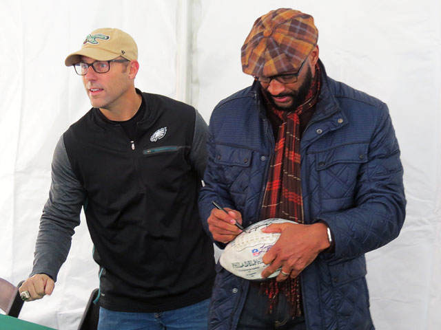 On Friday, three former members of the Philadelphia Eagles stopped by on 9th and Montrose for a meet and greet. David Akers, Irving Fryar, and Bill Bergey chatted with locals, posed for photos, and signed balls and jerseys.