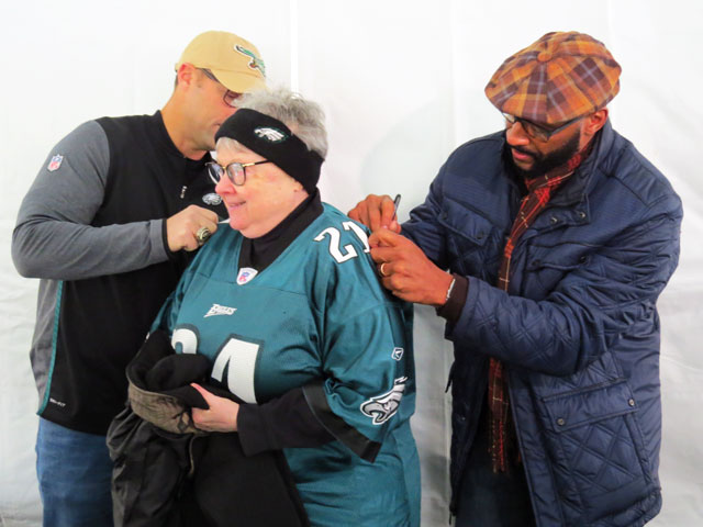 Although I don’t follow football, I’m loving how excited people in the city are that their team will be playing in the Super Bowl on Sunday night. The folks that turned out yesterday were thrilled to meet these former players, and it was wonderful that they took time out to reconnect with their fans. I’ve got my fingers crossed – GO EAGLES!!!