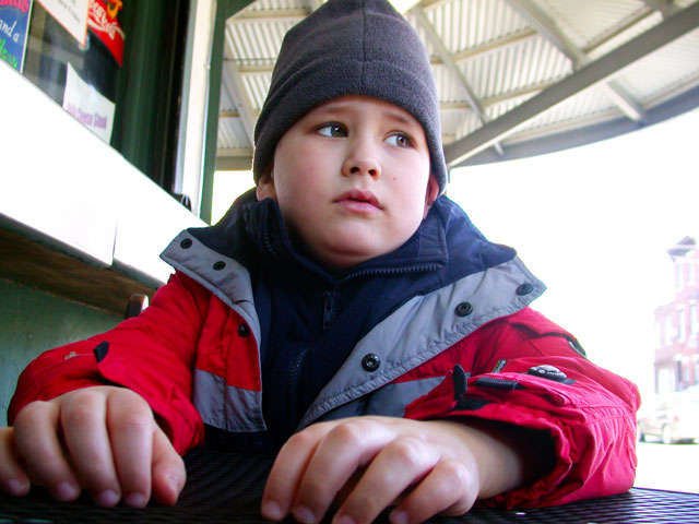 On Saturday mornings, the boy and I have our routine – we walk to 9th Street and shop for dinner. When we’re finished, we head to Lorenzo’s for pizza. It was Joe, who began shooting photos of Lloyd as a way to pass time while we were waiting for our slices. I took over the tradition of snapping a picture – at the counter, a table, or outside of the window, every week.